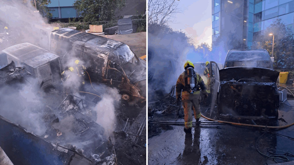 Τρία βαν στις φλόγες και ένας τραυματίας.