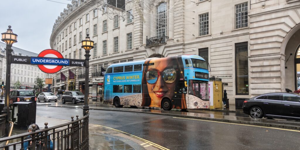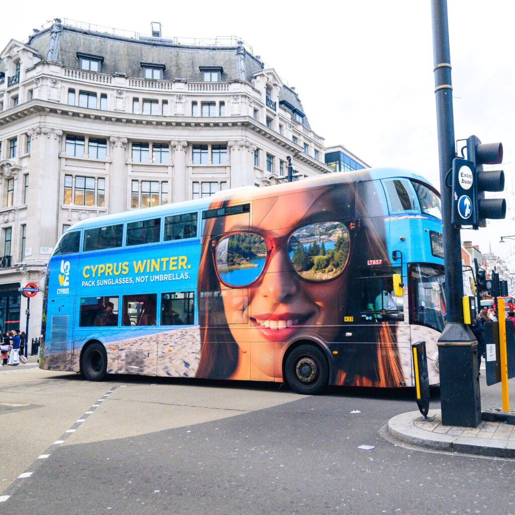 Οι δρόμοι της βρετανικής πρωτεύουσας έχουν γεμίσει με εικόνες και χρώματα της Κύπρου στο πλαίσο της νέας διαφημιστικής εκστρατείας του υφυπουργείου τουρισμού της χώρας.